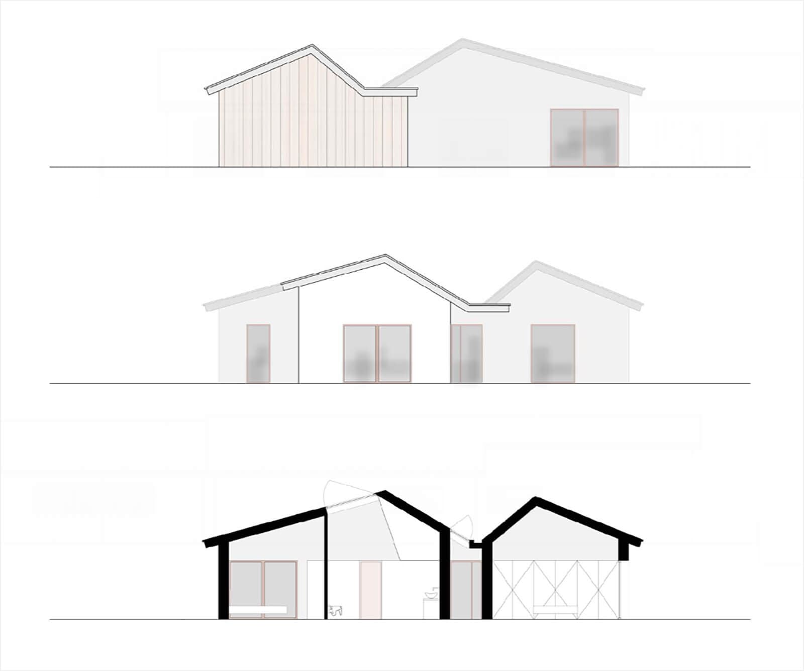 Buscamos el diseño sencillo que se ajustará a su capacidad económica y desarrollamos un sistema estructural de muros de carga con estructura de madera en dos naves para la cubierta.